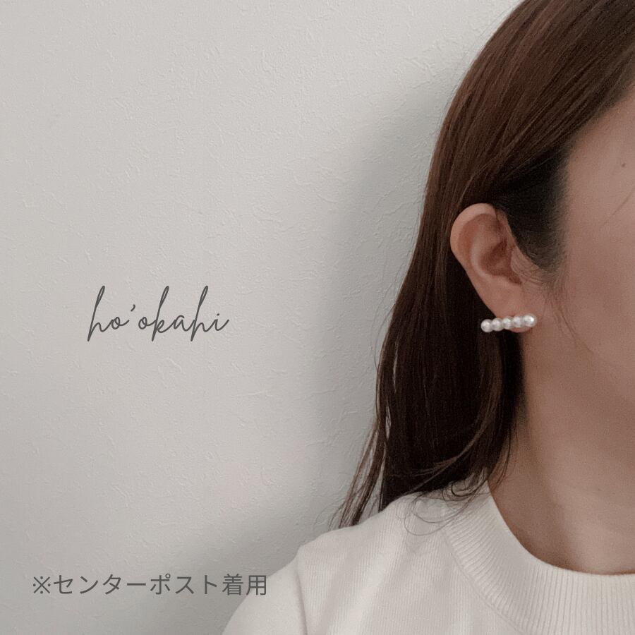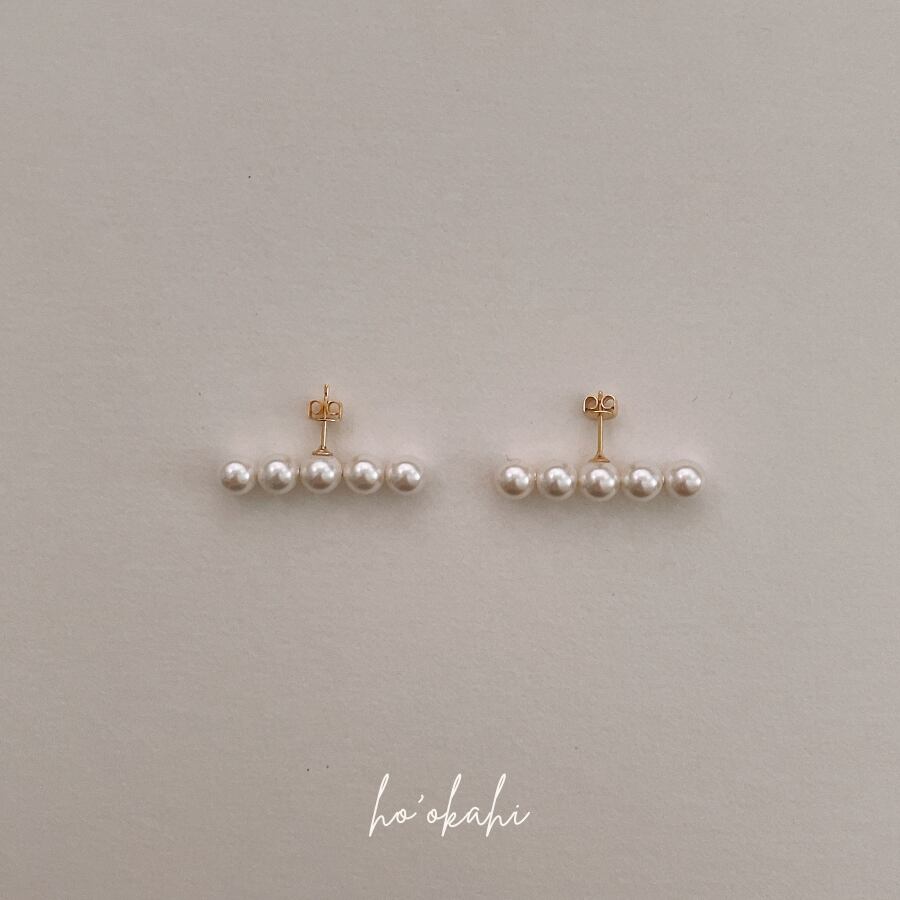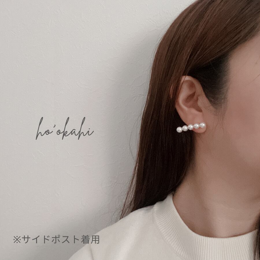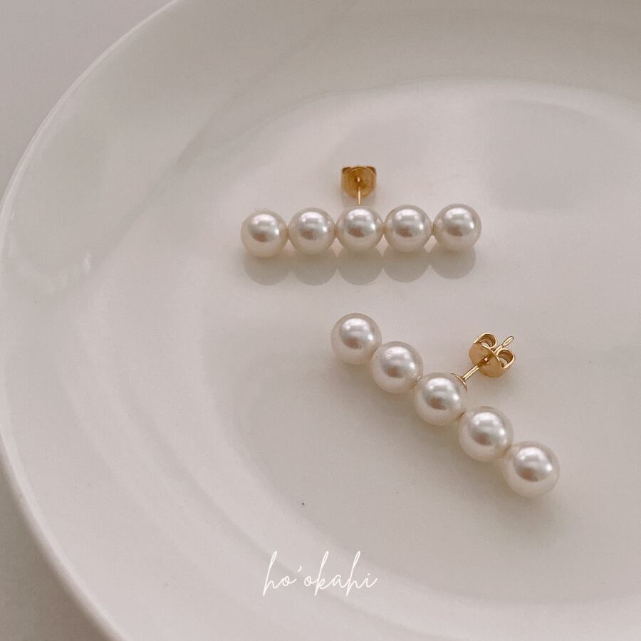 高品質なクリスタルパールを5粒並べた、華奢で上品なスティックピアス。
