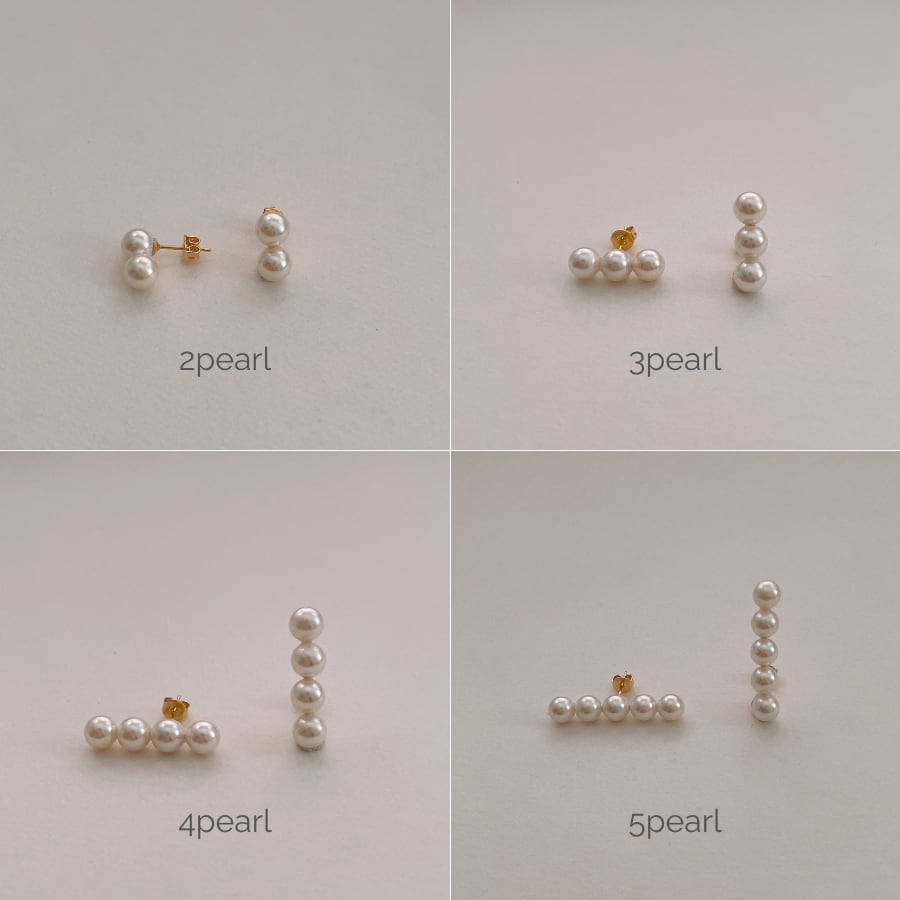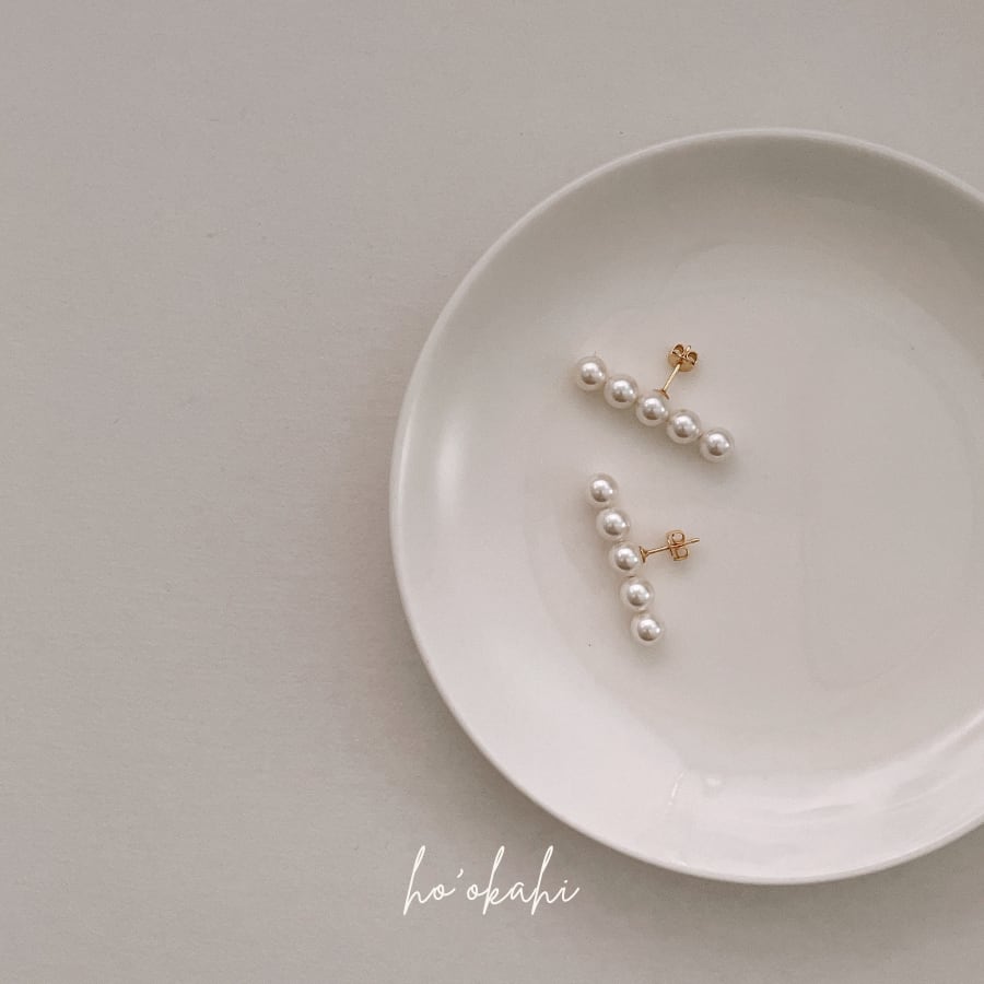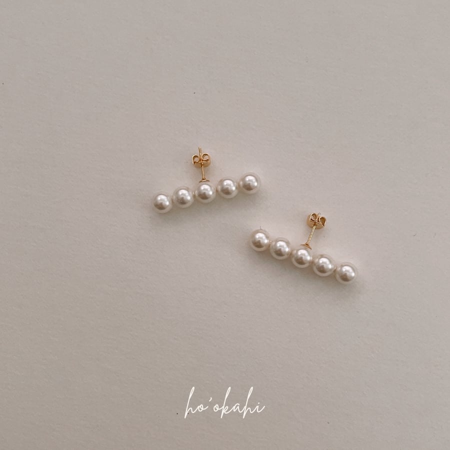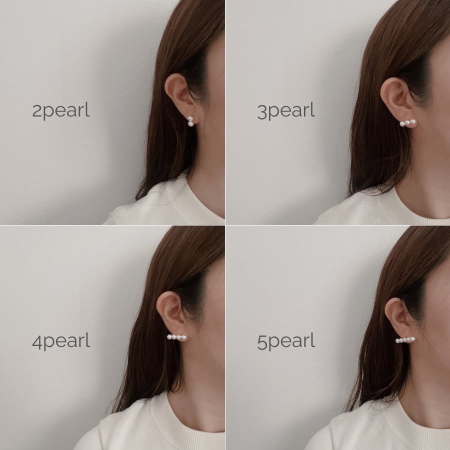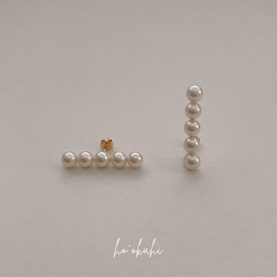 高品質なクリスタルパールを5粒並べた、華奢で上品なスティックピアス。